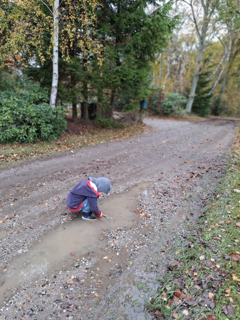 Of als we aan tafel zitten met schoteltjes verf en een groot stuk papier. Op een gegeven moment dan is het gewoon heel aanlokkelijk om met je handen door die verf te gaan. Ja het wordt dan meestal één grote bruine vlek. Maar ja, gaat het om het resultaat? Nee. Heeft hij plezier? Ja. Bovendien meestal gaat hij er helemaal in op, is geconcentreerd en je ziet hem experimenteren.